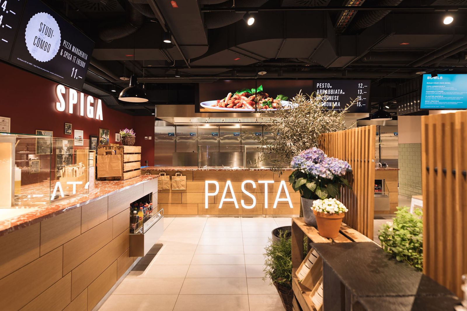 Die SPIGA Ristoranti an der Löwenstrasse in Zürich, an der Eisengasse in Basel sowie in den Einkaufszentren Westside, Glattzentrum, Shoppi Tivoli, Seedamm